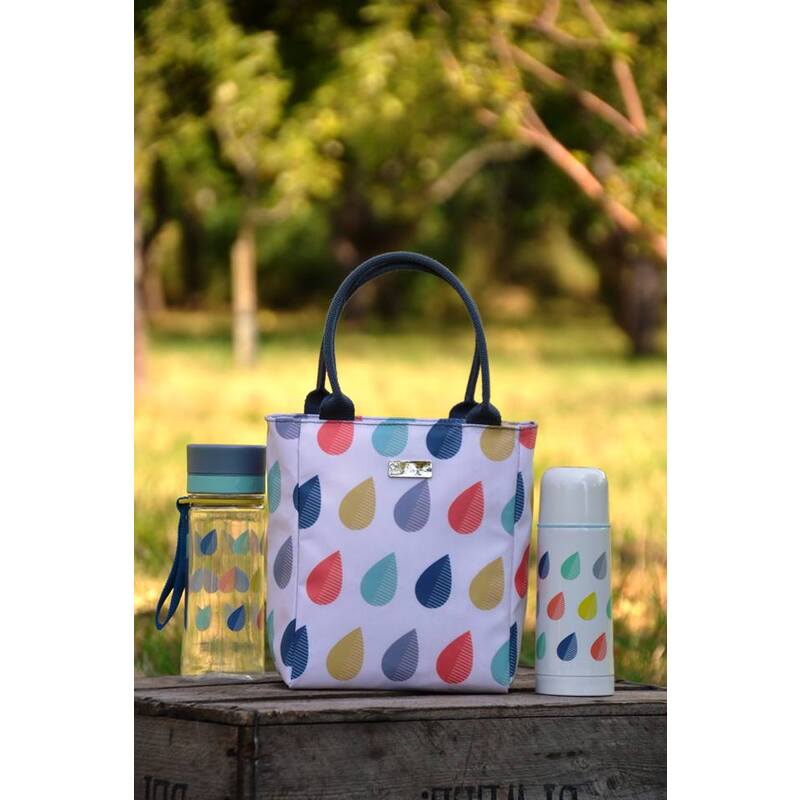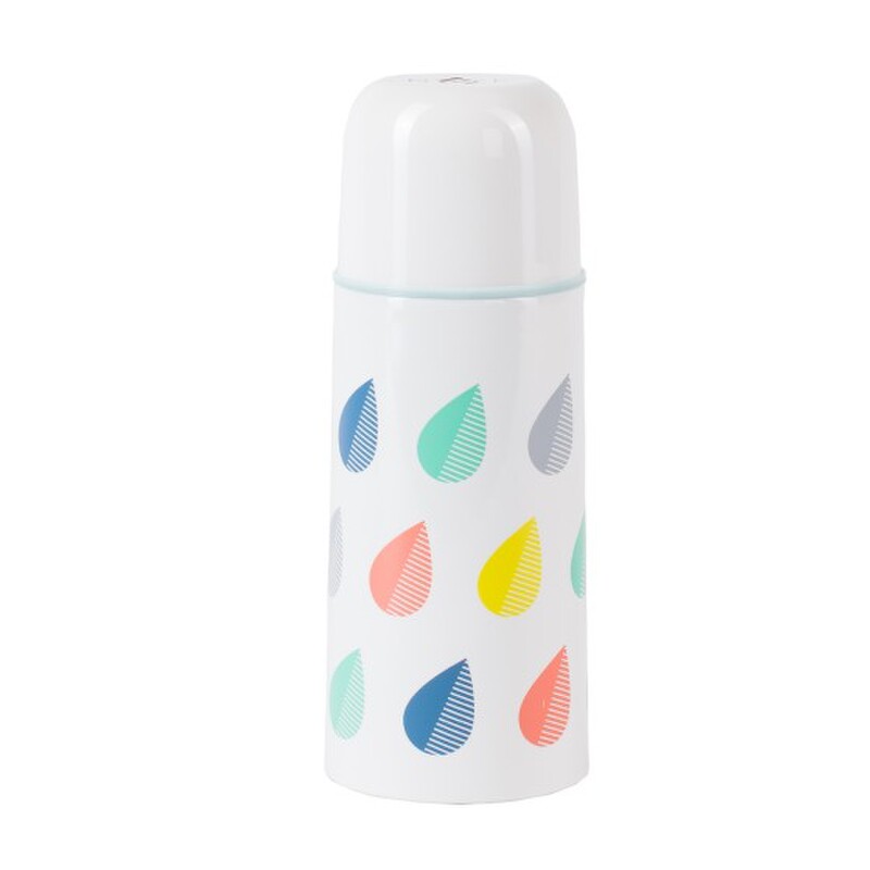 Termoska z nehrdzavejúcej ocele s pekným vzorom farebných dažďových kvapiek. Udrží nápoj chladný alebo teplý 8 hodín.