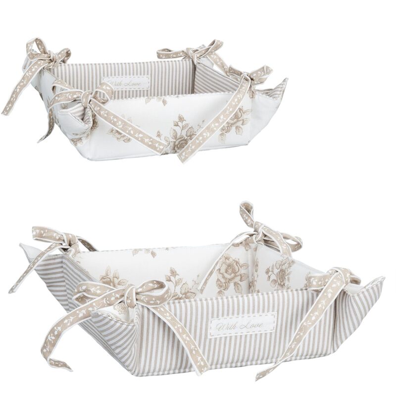 Košík na pečivo z krásnej kolekcie so vzorom ruží v bielo-béžovej farbe. Môžete ho použiť z oboch strán. Košík môžete pokojne oprať v práčke na 30 °C (na ručné pranie).