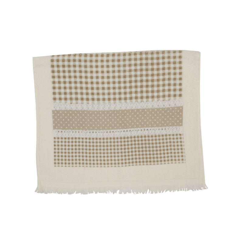 Bavlnený uteráčik, v bielo-béžovej farbe s čipkovanou aplikáciou.