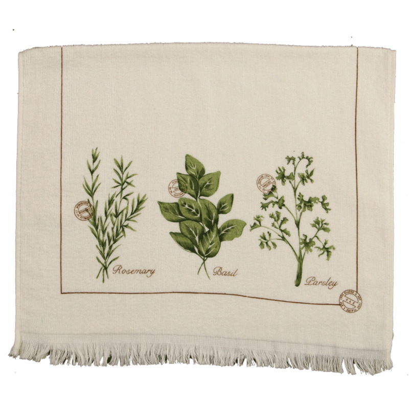Bavlnený uteráčik z kolekcie "bylinky" Farba: bledohnedá/zelená