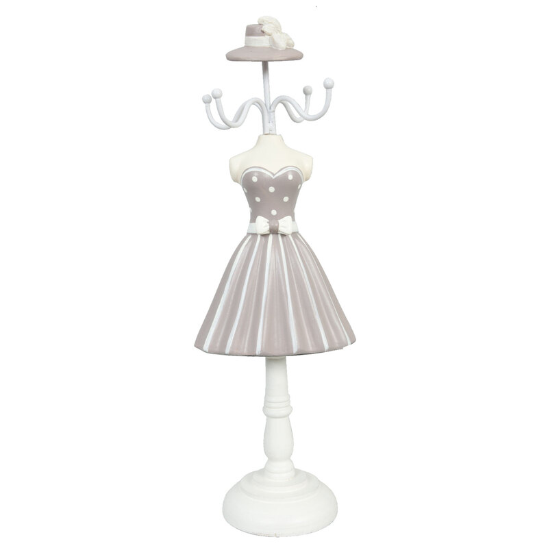 Viacramenný vešiačik na šperky (náušničky, prstienky...) v peknej sivej farbe s bodkami a klobúčikom.