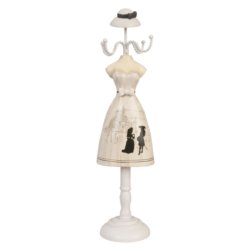 Vešiačik na šperky - šperkovník - s kovovými ramenami na zavesenie šperkov, s retro motívom dvoch postáv na sukni. Farba: šedá, biela, čierna