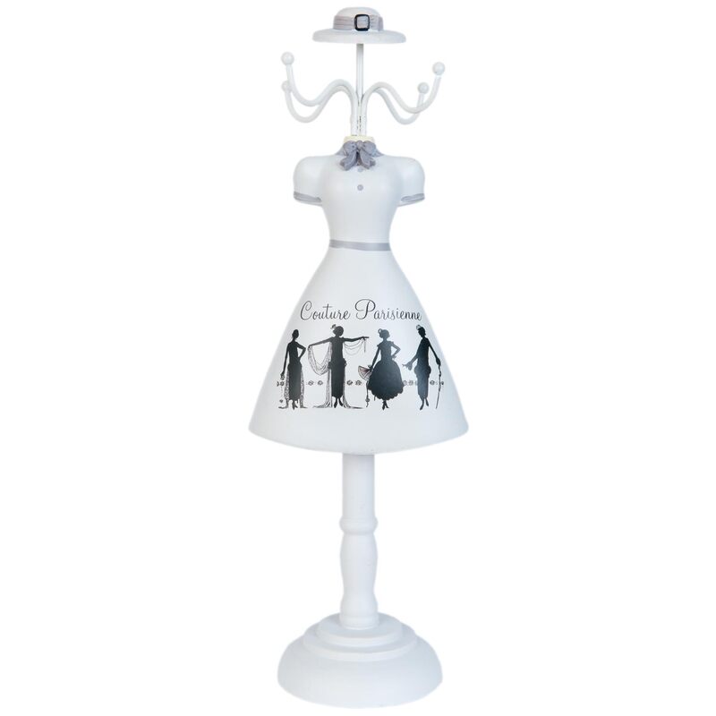 Krásny elegantný vešiačik na šperky - šperkovník v sivej farbe, s nápisom "Couture Parisienne" - krásne vynikne a skvele poslúži. Má niekoľko ramien, na ktoré si môžete zavesiť náramky, náušnice i náhrdelníky.