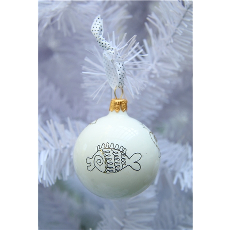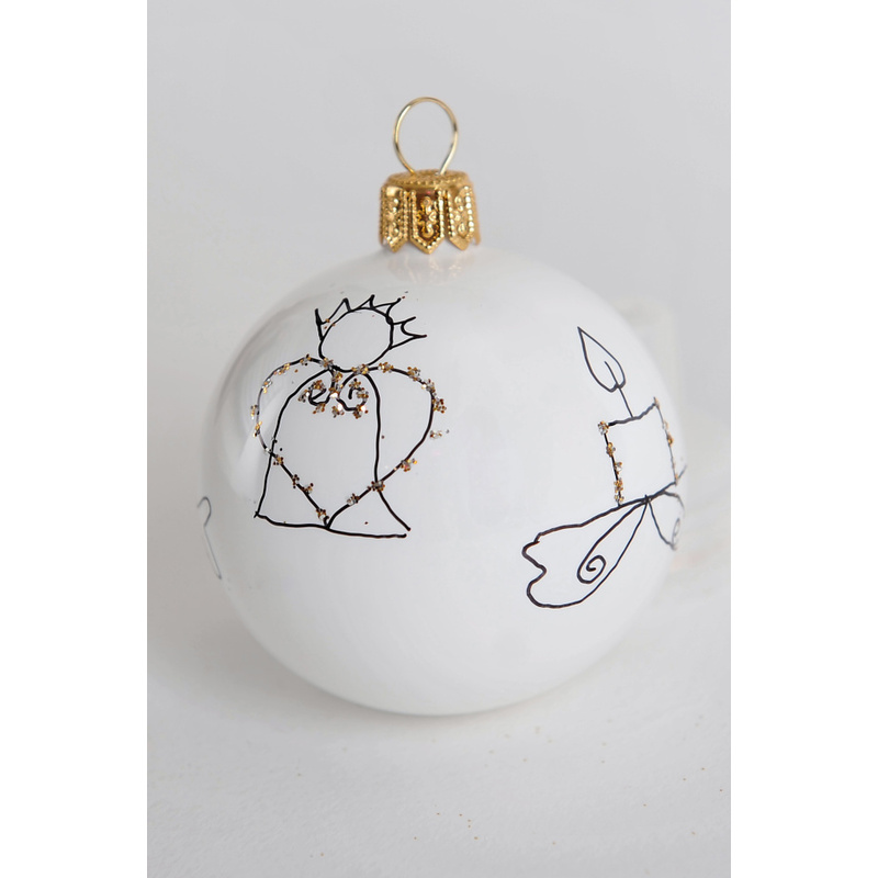 Vianočná guľa biela s obrázkami