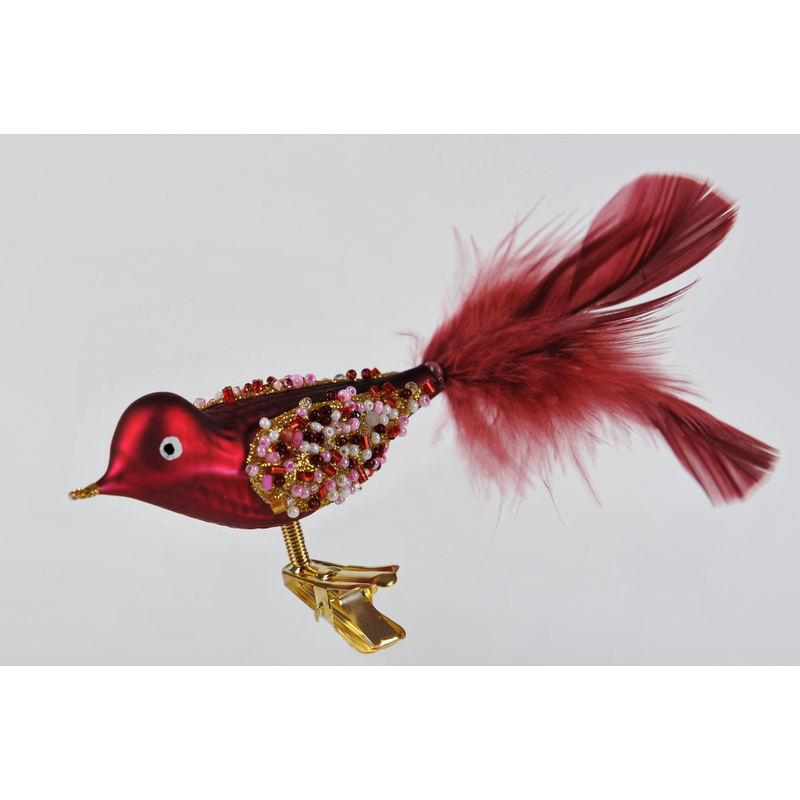 Urobte si čarovné Vianoce. Klasická sklenená ručne vyrobená a maľovaná ozdoba červeného vtáčika rozprávkovo vynikne na stromčeku alebo na halúzkach. Stačí ho len pripnúť zlatým klipom na halúzku.
