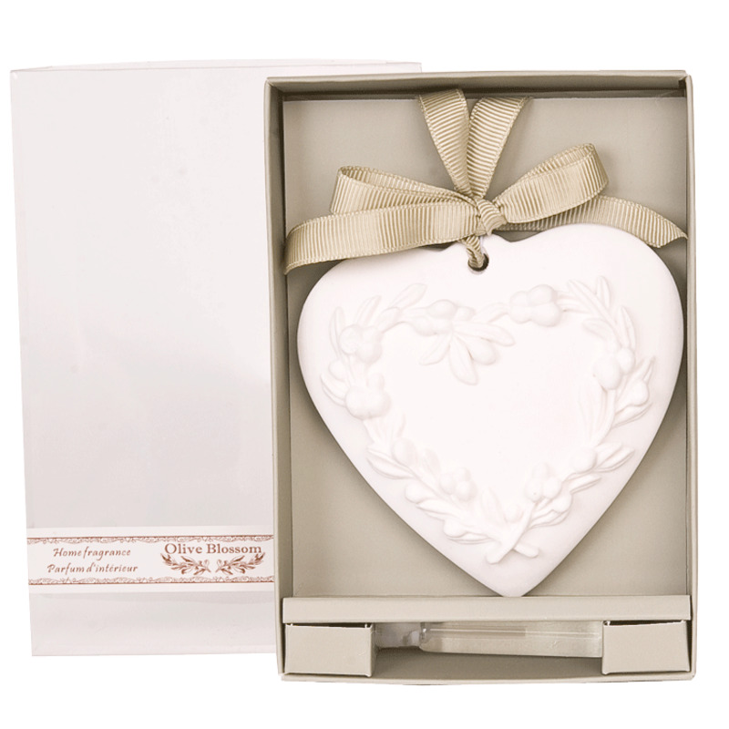 Vonný set v krabičke obsahuje terakotové srdiečko previazané saténovou stuhou a olivovú esenciu. Keď esenciou pokvapkáte srdiečko, krásne Vám prevoní Váš byt.