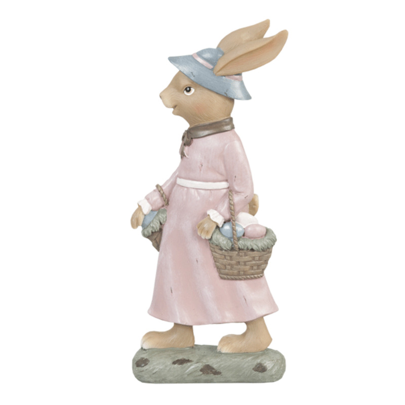 Veľkonočná dekorácia - figurína zajačice s košíčkami s veľkonočnými vajíčkami.