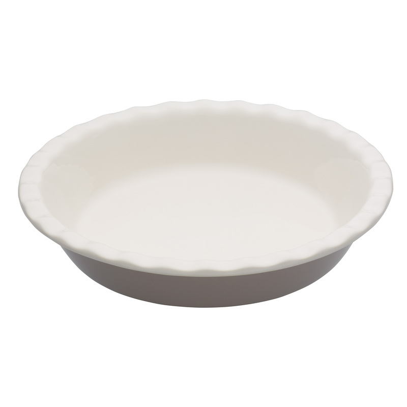 Keramická zapekacia misa na koláč v jemnej pastelovej sivej farbe s vlnkovatým okrajom. Dá sa použiť i priamo na servírovanie koláčov alebo iných pečených dobrôt.