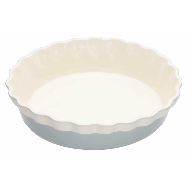 Kameninová zapekacia misa na koláč v jemnej pastelovej sivo-modrej farbe s vlnkovým okrajom. Dá sa použiť i priamo na servírovanie koláčov alebo iných pečených dobrôt.