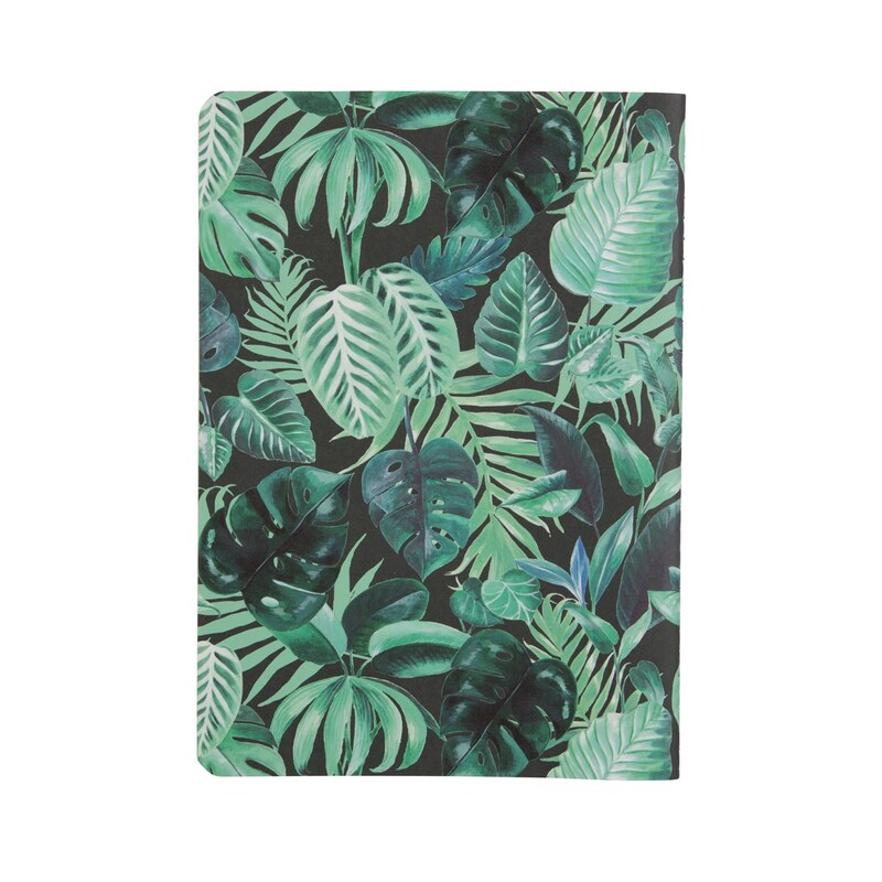 Monstera, palma ci fikus sa dostali na tento krásny zelený zápisník. Zapíšte si doň všetky svoje poznámky a myšlienky a nechajte sa uniesť do džungle plnej nápadov.