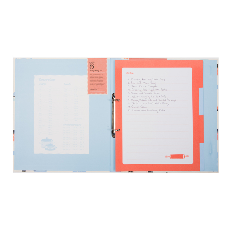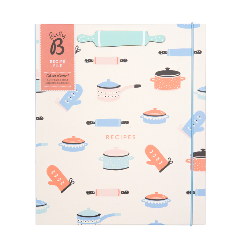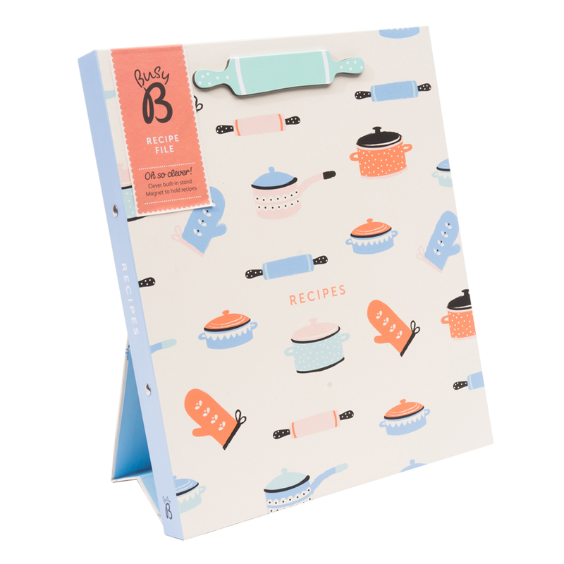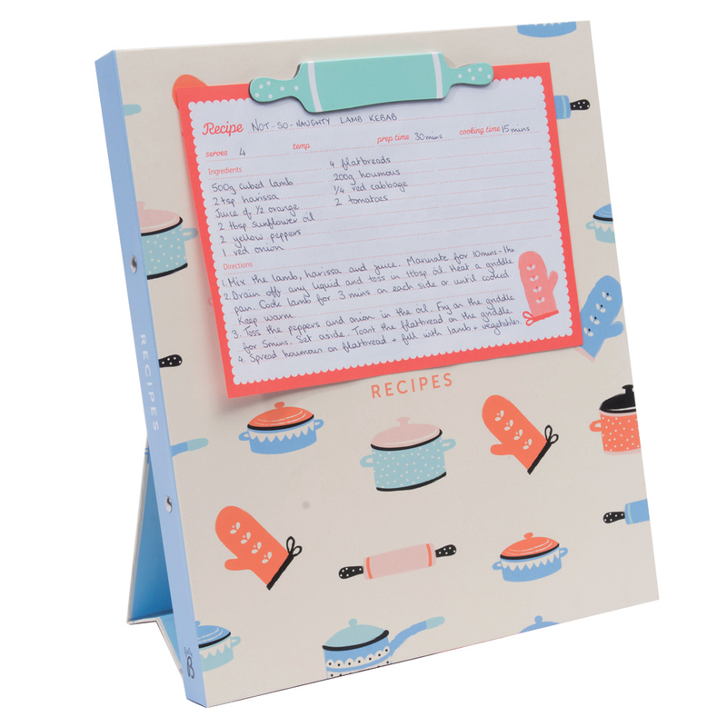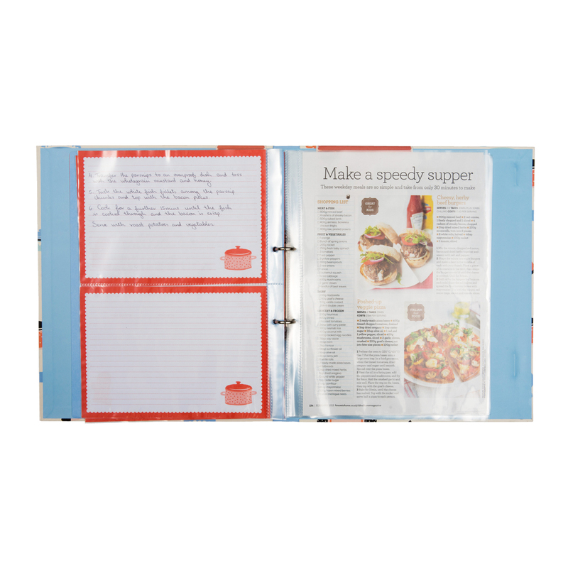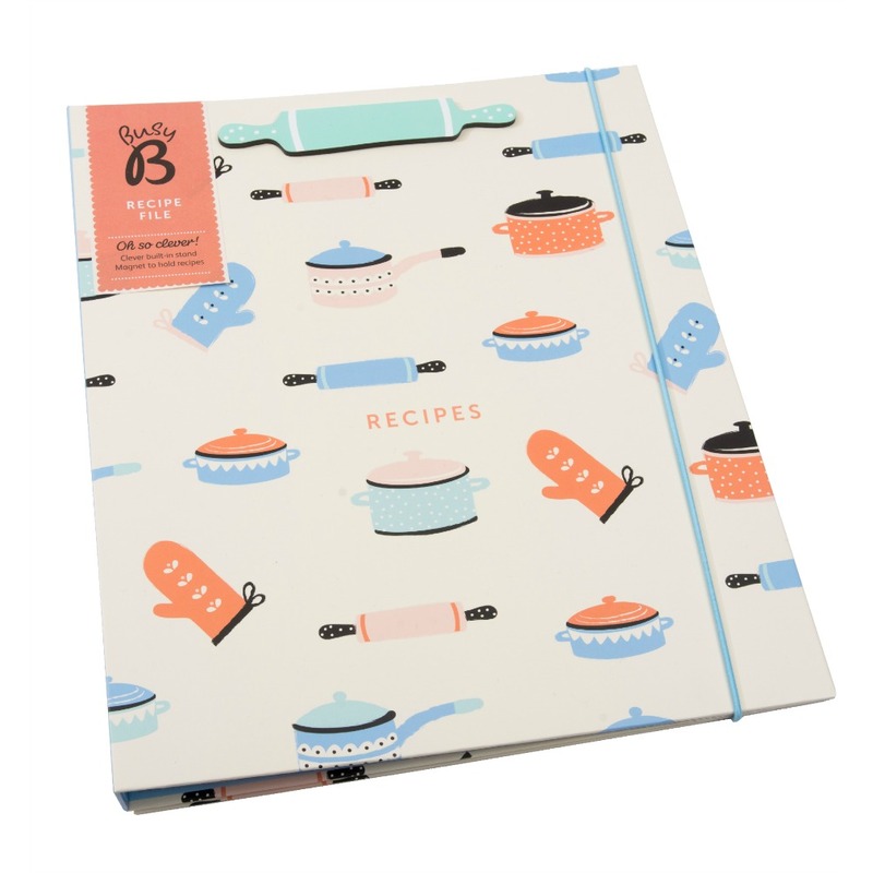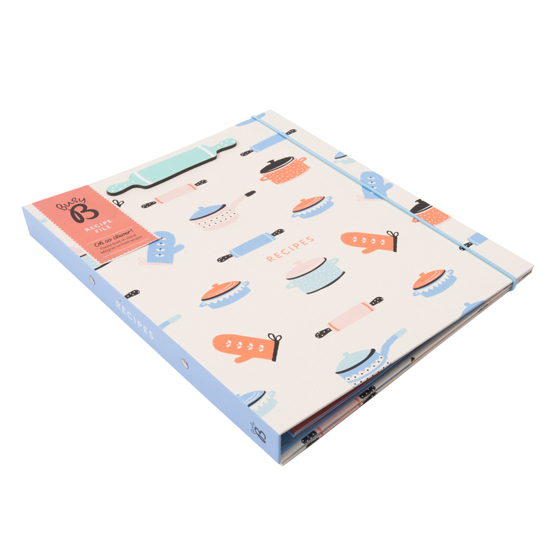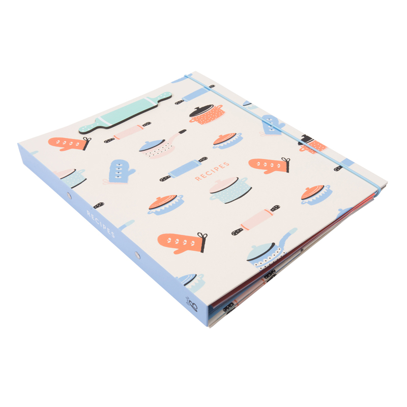 Konečne! Zápisník na všetky Vaše útržky a recepty vystrihnuté z časopisov alebo vytlačených z internetu. Ak ste pripravení uvariť svoju delikatesu, len pristúpite k zápisníku a vytiahnete ten Váš obľúbený. Receptár je pripravený ako zakladač, do ktorého môžete založiť už vystrihnuté recepty, zatvára sa na gumičku a má magnetický klip/stojan, ktorý môžete rozložiť a prakticky čítať recepty pri varení. Je rozdelený na štyri časti, takže ľahko nájdete, čo hľadáte. Obsahuje 6 A4 a 2 A5 plastických vreciek pre ukladanie receptov. Môžete však ľahko pridať ďalšie.