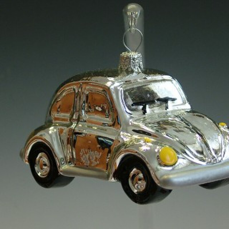 Klasická sklenená ručne vyrobená a maľovaná ozdoba - auto "chrobák" rozprávkovo vynikne na stromčeku alebo na halúzkach.