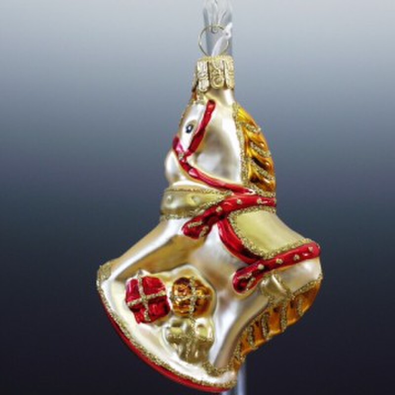 Klasická sklenená ručne vyrobená a maľovaná ozdoba - húpací koník, rozprávkovo vynikne na stromčeku alebo na halúzkach.