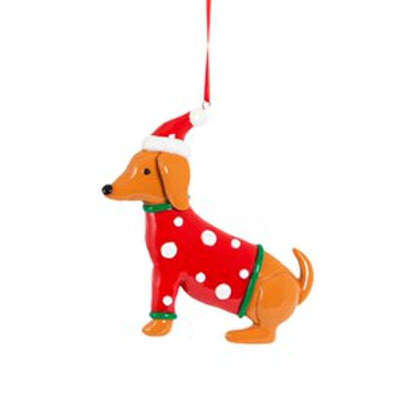 Vianočná ozdoba od sass&belle - jazvečík v červenom bodkovanom svetri rozžiari očká každému dieťaťu a prenesie ho do sveta rozprávok.