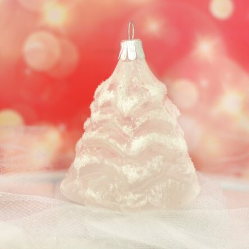 Klasická sklenená ručne vyrobená a maľovaná ozdoba - smrek biely priehľadný.